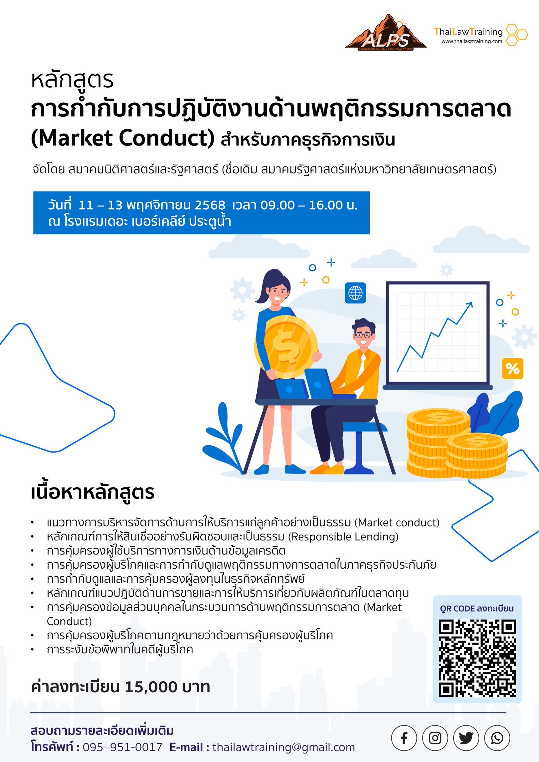กำหนดการอบรมในวันที่ 4 - 6 พฤศจิกายน 2568 เวลา 09.00 – 16.00 น. รวม 18 ชั่วโมง