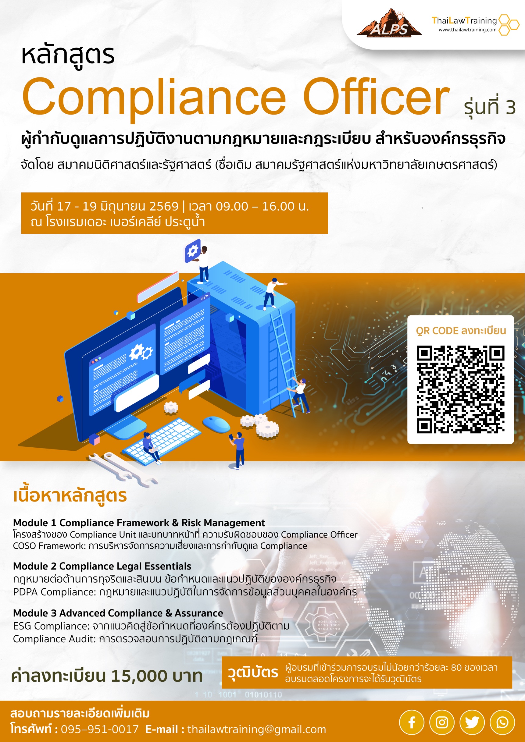 กำหนดการอบรมในวันที่ 25 – 27 มีนาคม 2569 เวลา 09.00 – 16.00 เวลา 09.00 – 16.00 น. รวม 3 วัน