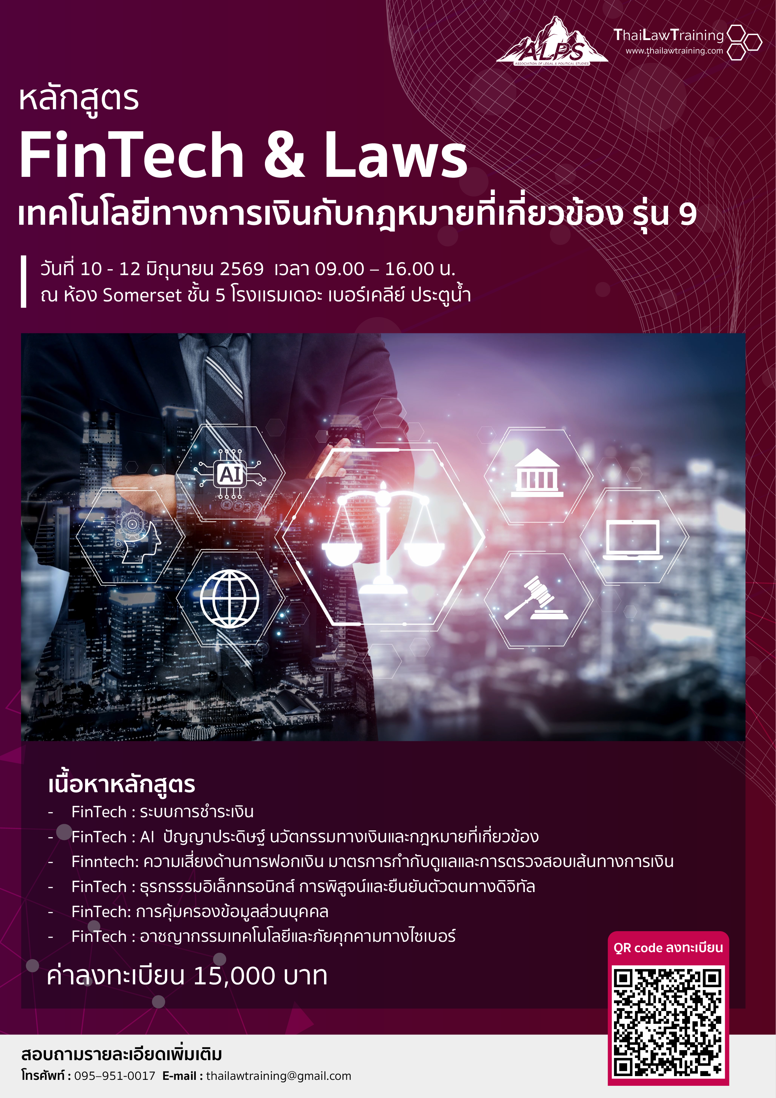 ThaiLawTraining เป็นศูนย์การจัดอบรมหลักสูตรเกี่ยวกับกฎหมายฟอกเงิน กฎหมายสถาบันการเงิน กฎหมายฟินเทค กฎหมายเทคโนโลยีสารสนเทศ กฎหมายคุ้มครองข้อมูลส่วนบุคคล และกฎหมายอื่นที่เป็นประโยชน์ต่อบุคลากรของภาคธุรกิจสถาบันการเงิน องค์กรธุรกิจ ธุรกิจหลักทรัพย์ ธุรกิจประกันภัย ที่ปรึกษากฎหมายและทนายความ อาทิ หลักสูตรกฎหมายฟอกเงินสำหรับผู้มีหน้าที่รายงาน หลักสูตรพระราชบัญญัติคุ้มครองข้อมูลส่วนบุคคล (หลักสูตร PDPA) หลักสูตรการกำกับการปฏิบัติงานด้านเทคโนโลยีสารสนเทศ (IT Compliance) หลักสูตร AML Risk Based Approach Workshop การอบรมเชิงปฏิบัติการฐานความเสี่ยงด้านการฟอกเงินฯ หลักสูตรการสืบสวนสอบสวนคดีการเงินการธนาคาร หลักสูตร FinTech & Law หลักสูตรผลิตภัณฑ์ทางการเงินการลงทุน กฎหมายและการกำกับดูแล หลักสูตรการจัดซื้อจัดจ้างภาครัฐกับผู้ประกอบการ หลักสูตรการกำกับการปฏิบัติงานด้านธุรกิจสินเชื่อ หลักสูตรการบังคับใช้กฎหมายกับคดีตลาดเงินตลาดทุน หลักสูตรกฎหมายของผู้ประกอบการ SME