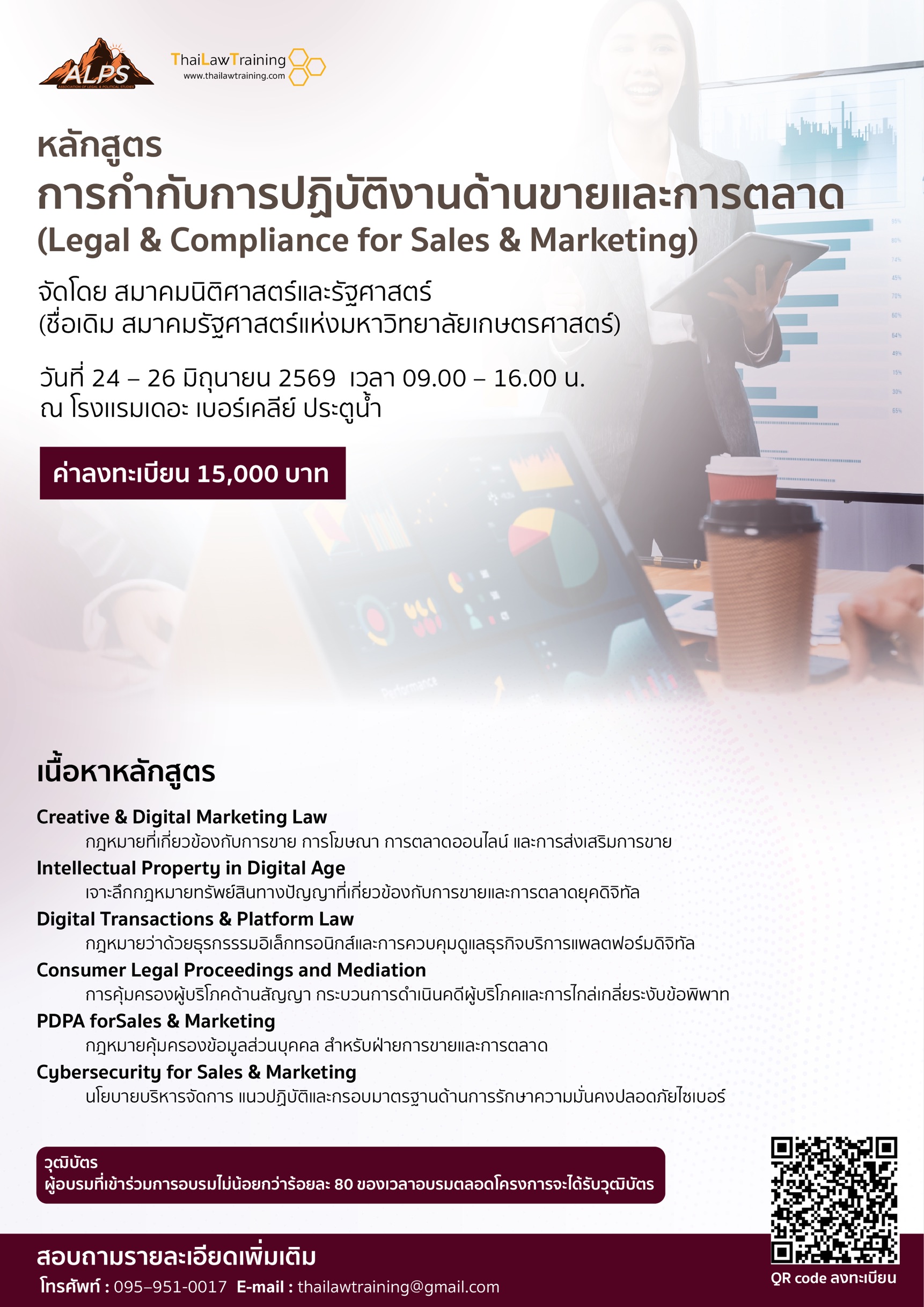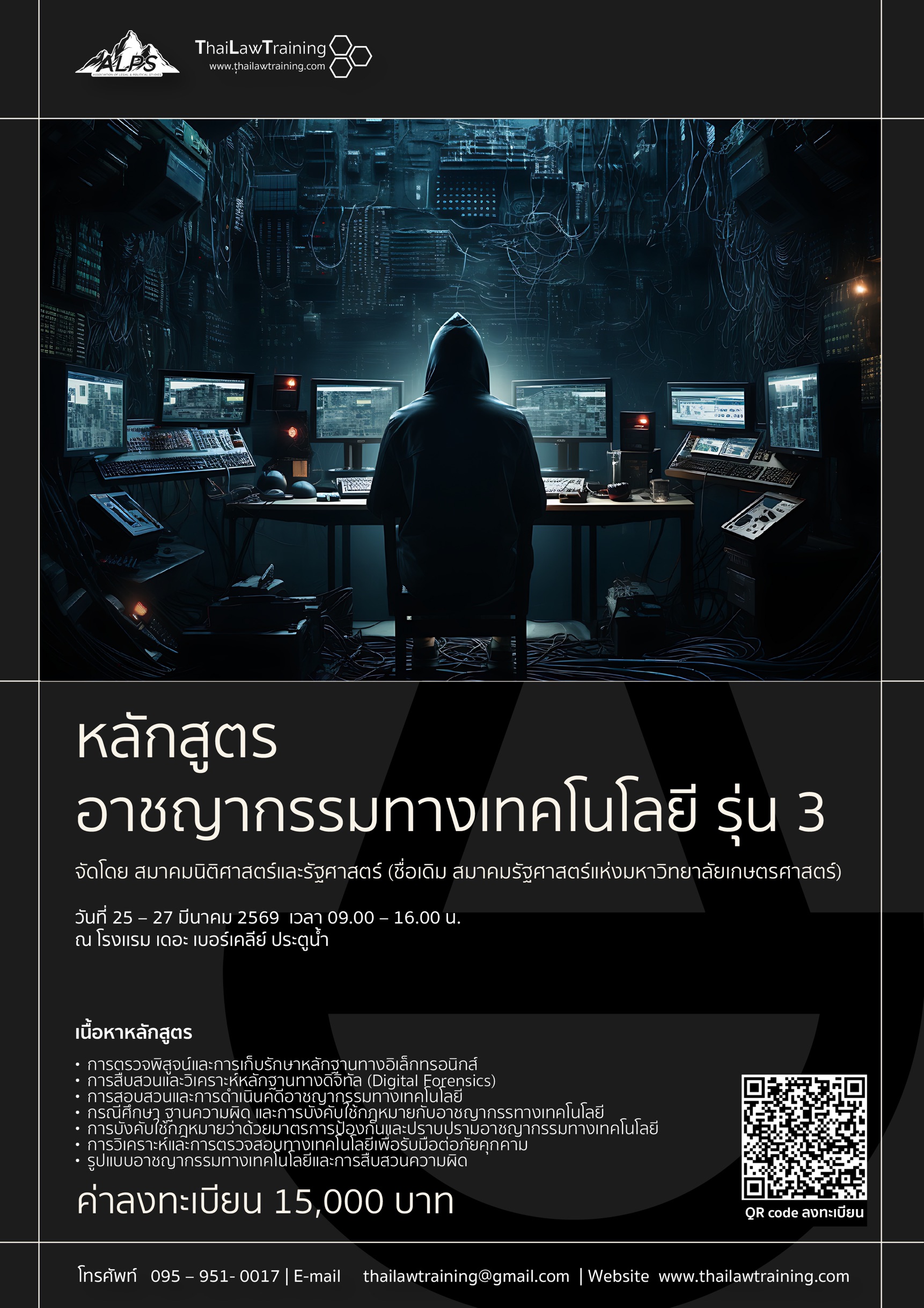 กำหนดการอบรมในวันที่ 25 – 27 มีนาคม 2569 เวลา 09.00 – 16.00 เวลา 09.00 – 16.00 น. รวม 3 วัน